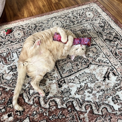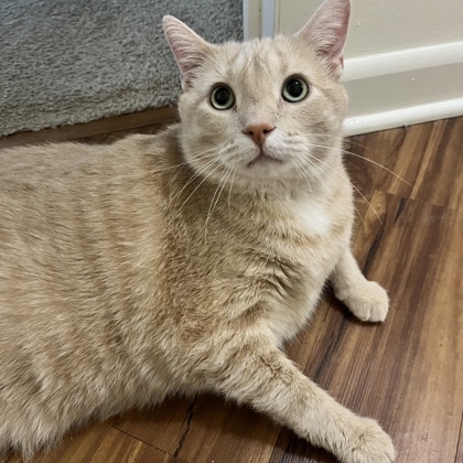 Meeka is a 7-year old lover boy! His favorite things in life include a lap to lay on, a bed to cuddle in, and cheek scratches. His perfect day would include an early breakfast then back to bed for petting, rotating between the floor and couch for naps, looking out the windows to watch cars and birds, have play time with catnip, then ending the evening snuggling. He is a bit scared of loud noises and quick movements! In my home, Meeka does excellent with new people and other cats. Come meet Meeka if you're looking for a sweet, gentle, and loving companion.