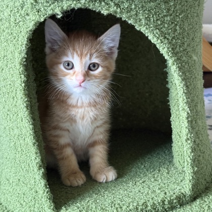 "Ollie is a sweet, playful boy! He loves to chase wand toys, fuzzy balls, and play mice! He also enjoys playtime with his brothers, chasing and tackling like a pro. Ollie enjoys a snuggle up close under your neck, giving a purr to let you know he's loving it! Contact ottfosters@gmail.com for more info on Ollie."