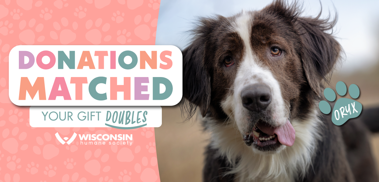 Every dollar you give to the Wisconsin Humane Society is being matched by some incredible friends, up to $100,000! All you have to do is make your donation NOW and it will have double the impact on animals and the people who love them. Animals like Oryx...
