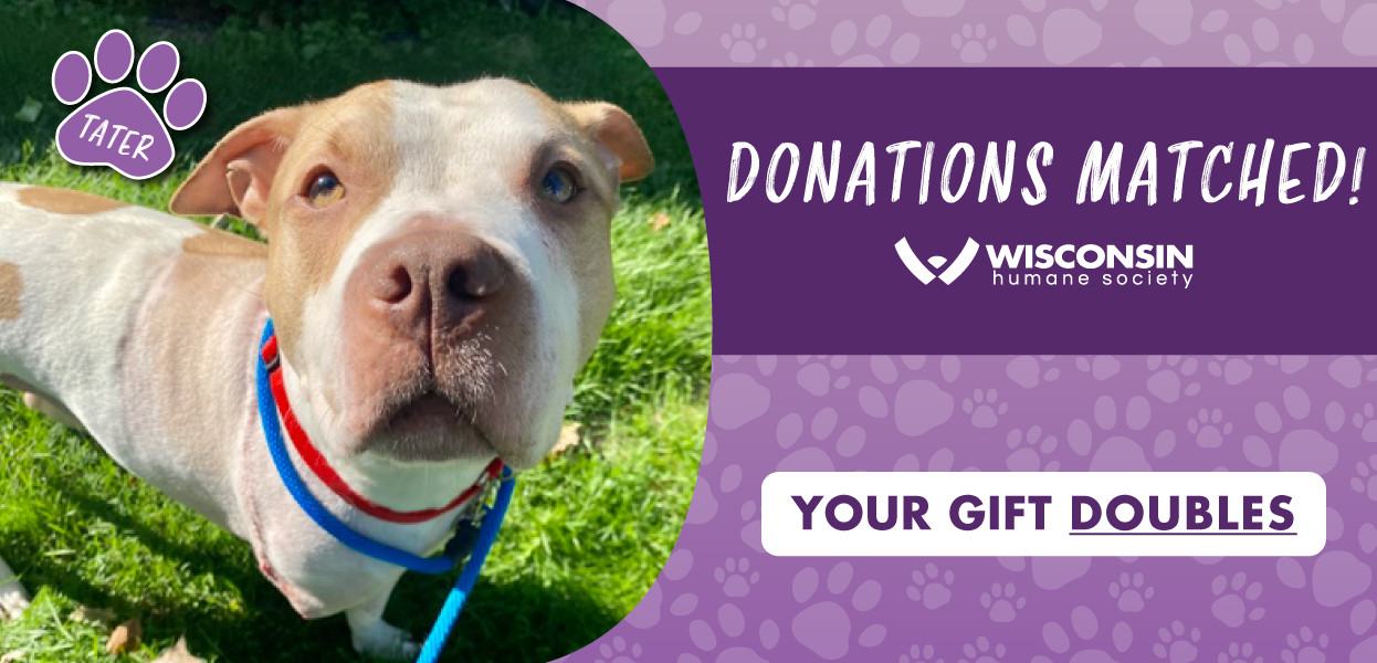 Every dollar you give to the Wisconsin Humane Society is being matched by some incredible friends right now, up to $60,000! All you have to do is make your donation NOW and it will have double the impact on animals in need. Animals like Moxxie...