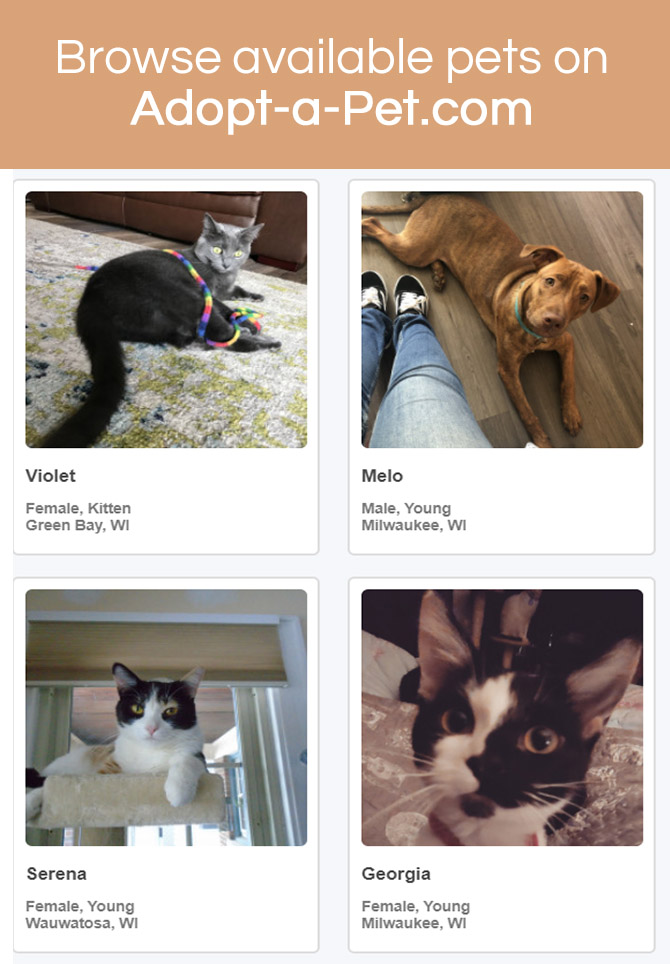 If you haven't found your match at the Wisconsin Humane Society yet, we recommend visiting the Home To Home website to view local animals in need of new homes.