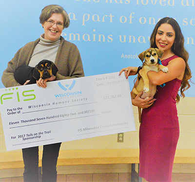 This generous gift will help save many thousands of animals just like pups Kay & Rue, pictured here alongside WHS President & CEO, Anne Reed, and Monica Weggeman of FIS Global. Thank you for making a difference.