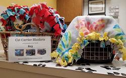 We want to say thank you to Trish, the receptionist at Shorewood Animal Hospital, who makes these cute fleece blankets to put over cat carriers for their patients. Shorewood Animal Hospital sells them, and donates the proceeds back to the Wisconsin Humane Society. The most recent quarterly donation was $170.00! Thank you Shorewood Animal Hospital and Trish for making these, and for all the clients who have purchased them! Your committment to animals is inspiring.