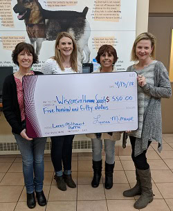 Each year Elissa thanks her clients with a pie and invites them to contribute to a charitable cause. This year she chose the Wisconsin Humane Society as her cause and she was quite successful! Thank you so much to the generosity of her clients and especially to Elissa for wanting to help the animals!