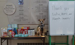 This past week, the Marquette University Police Department and Marquette University celebrated Nattie’s birthday. Nattie is a WHS Alum, and former PAL dog. In honor of her birthday, and her connection with WHS, the MUPD decided to throw a birthday party for Nattie, and collect donations for the animals here at the shelter! Thank you so much MUPD and Marquette! Happy Birthday, Nattie!