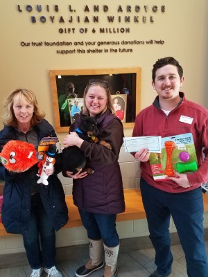 We have never been so excited to see a company show up with garbage cans! A huge thanks to the amazing staff of Camp Bow Wow who put together a raffle for anyone who made a donation to their holiday fundraiser and donation drive. The shelter animals are going to be so happy when they get to use all the fantastic supplies that were donated. Thank you for your creativity and willingness to support homeless animals!
