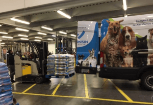 Wow! Everyone here at the Wisconsin Humane Society’s Milwaukee Campus want to give a huge thank you to our friends at Wooftrax! They donated 110 4lb bags of dog food for our Furry Friends Food Pantry. This is so meaningful for families in our community experiencing temporary hardship, especially during the holiday season. Everyone here at WHS, including the animals, are so grateful for Wooftrax’s generous donation! Thank you!